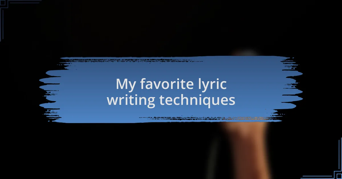 My favorite technique for writing lyrics revolves around the use of vivid imagery. I remember penning a song where I described a stormy night, and the rain hitting the window like a symphony of emotions. The scene was more than just words; it invited listeners to feel the tension and release I experienced in that moment. Have you ever found that choosing the right images can transform a line from ordinary to unforgettable?